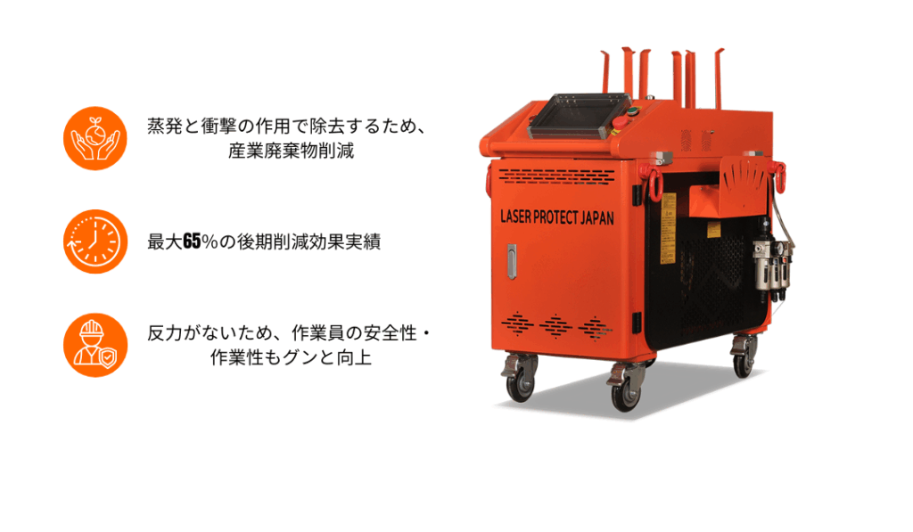 LASER PROTECT JPを導入することで、こうした課題を解消し、作業工数の大幅な削減が可能になります。レーザーによる高効率なサビ除去を実現する本装置は、今後、業界における新たなスタンダードとなることが期待されています。